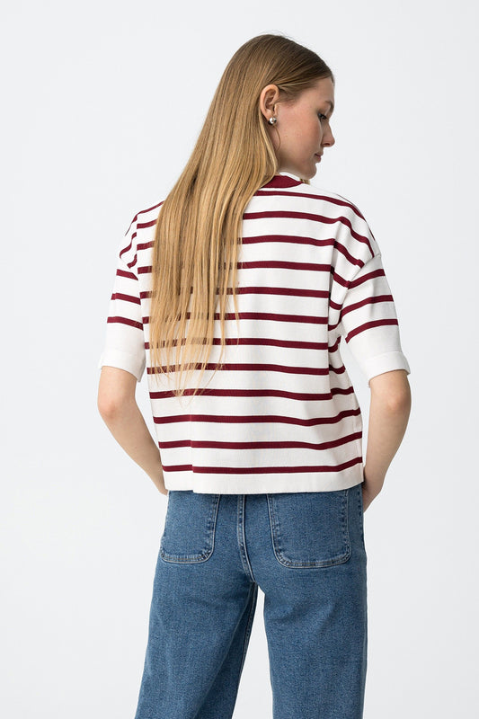 Πλεκτή Μπλούζα με Μπορντό Ρίγες