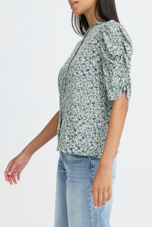 Μπλούζα Εμπριμέ με Μανίκια με Σούρα