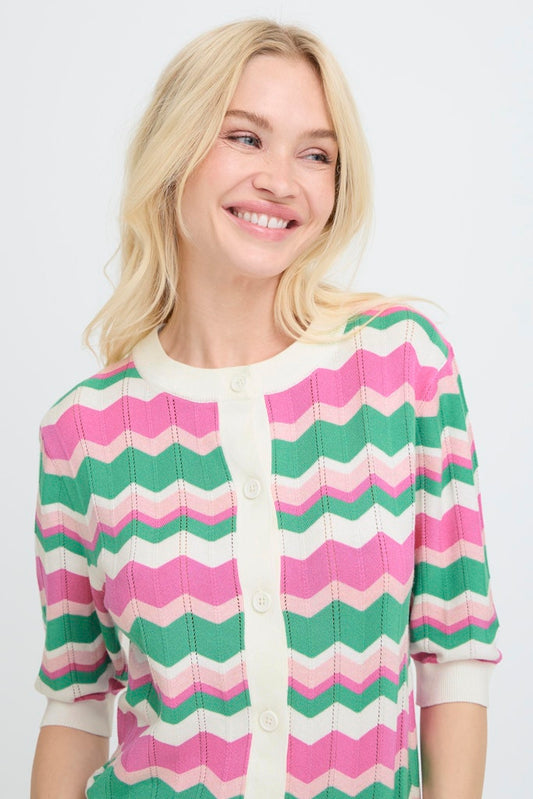 Ζακέτα 3/4 μανίκι διάτρητη πλέξη με chevron μοτίβο