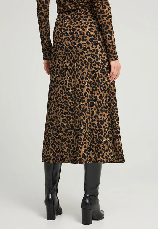 A-line midi φούστα με καφέ λεοπάρ print