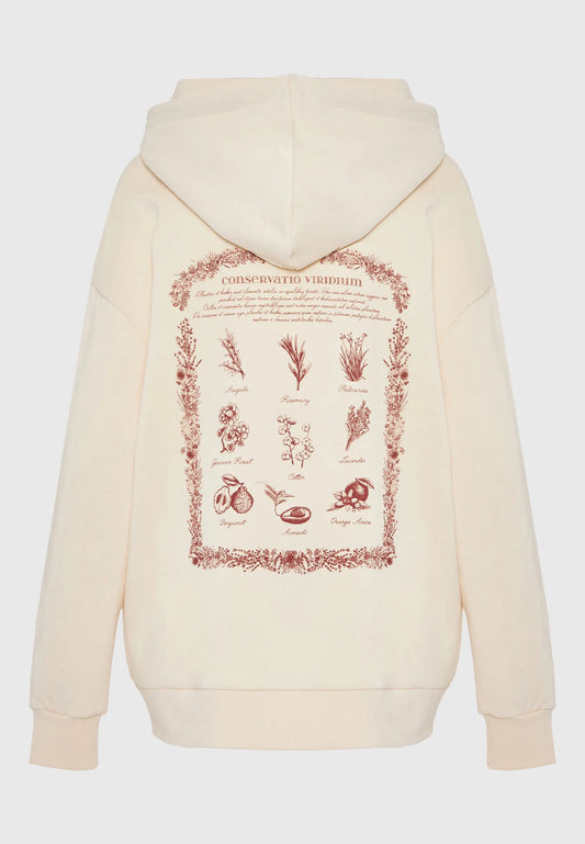 Oversized Φούτερ Κουκούλα Τύπωμα Βότανα