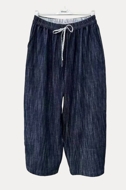 Jeans Wide Leg Ριγέ Ελαστική Μέση