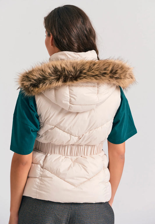 Καπιτονέ αμάνικο μπουφάν με κουκούλα