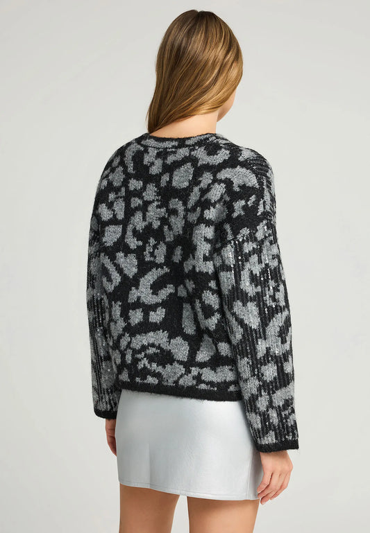 Πλεκτό πουλόβερ με λεοπάρ σχέδιο και παγιέτες