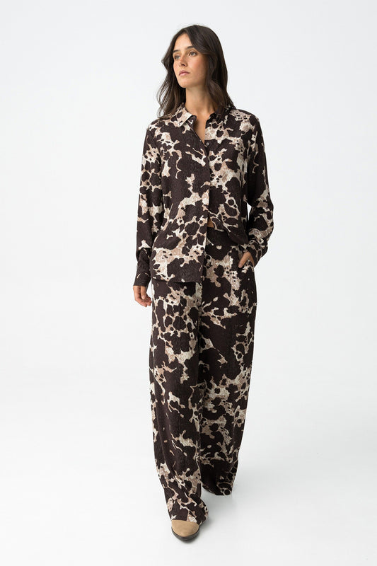Palazzo Παντελόνι Cow Print με Πλαϊνό Φερμουάρ