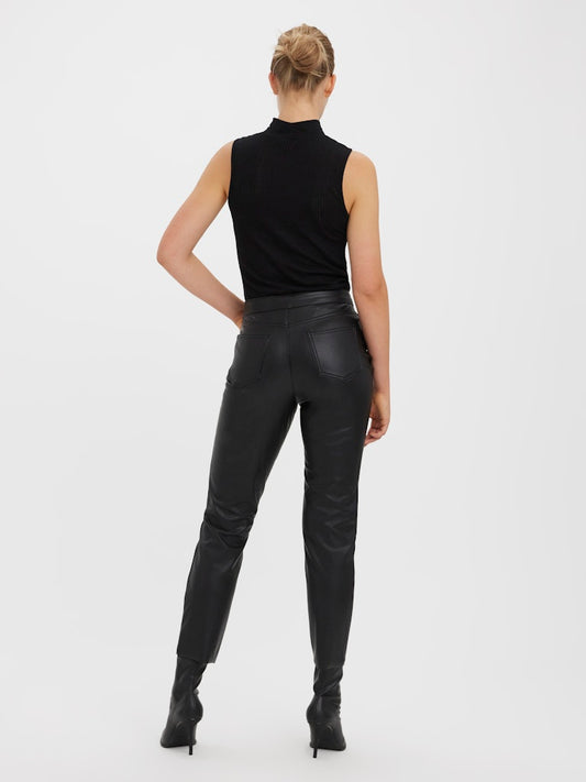 Ψηλόμεσο Δερματίνη Παντελόνι Ίσια Γραμμή