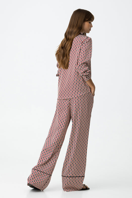 Ψηλόμεσο Satin Wide-Leg Παντελόνι με Ασπρόμαυρο Print