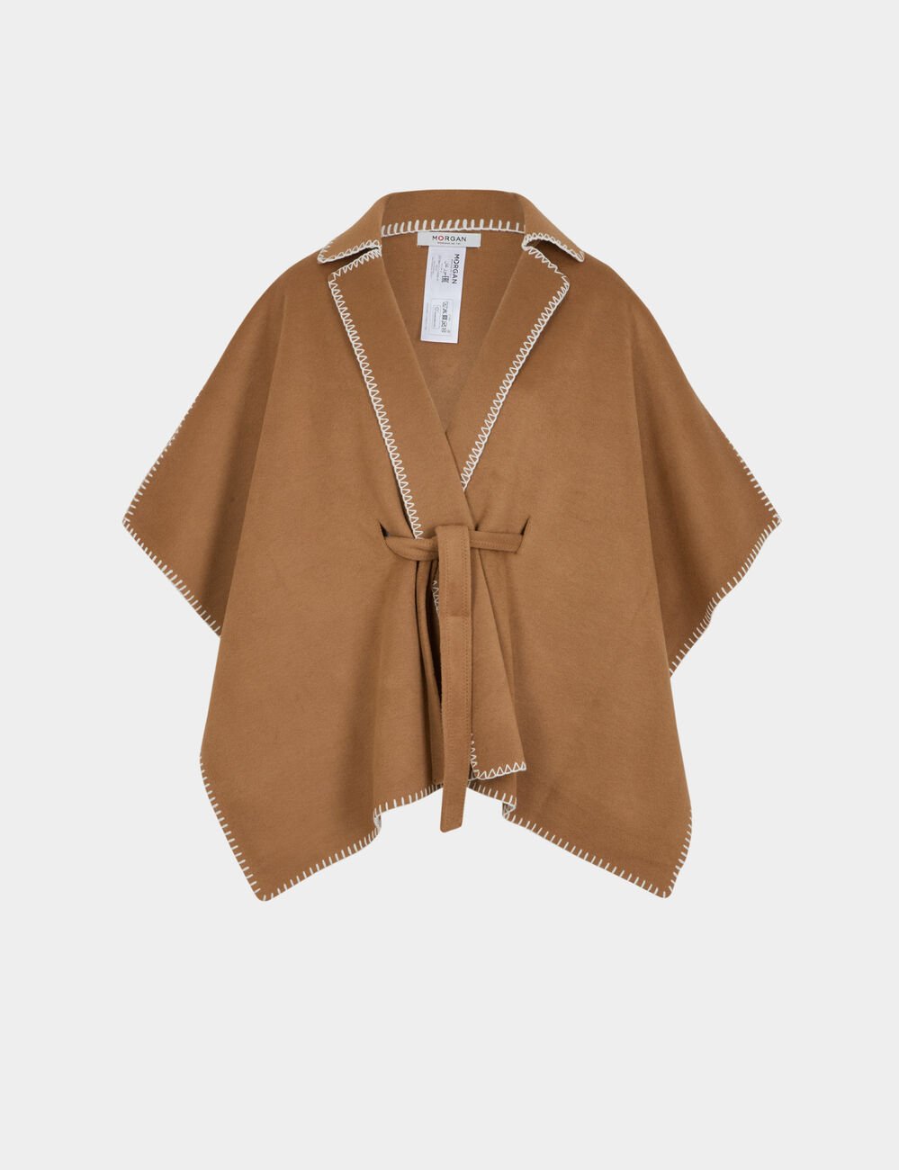 Πόντσο με γιακά και ζώνη από την MORGAN - το statement κομμάτι για sophisticated εμφανίσεις! Κοντά μανίκια kimono, structured γιακά, ζωνάκι που δίνει σιλουέτα και contrast ραφές που προσθέτουν artisan πινελιά. Η elegant επιλογή που συνδυάζει cozy άνεση με refined στυλ για effortless chic!