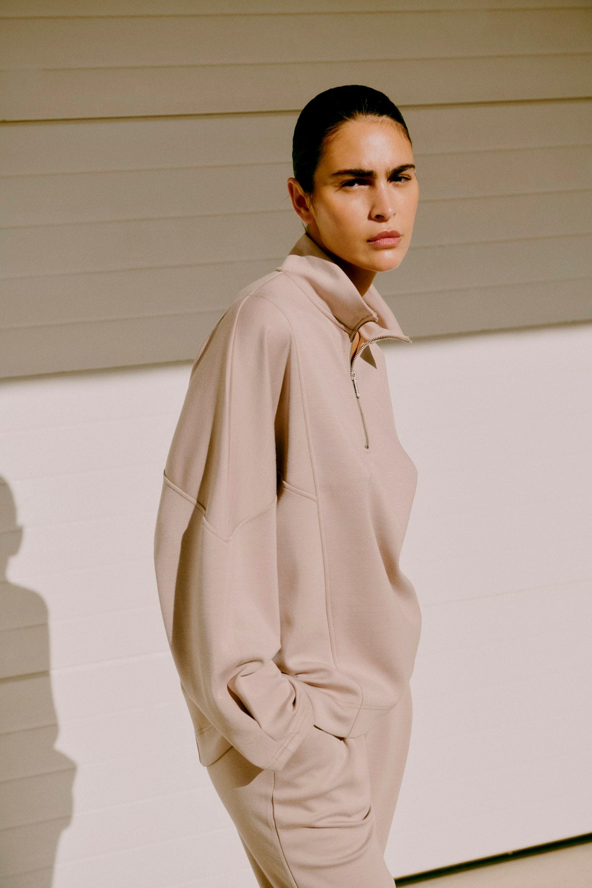 Μπλούζα half zip από την B.YOUNG - το gorgeous κομμάτι με το διάσημο model ύφασμα! Half zip κλείσιμο, μακριά μανίκια με πιέτες λεπτομέρεια και κεντημένο logo στην πλάτη. Η πρακτική επιλογή που συνδυάζει άνεση με stylish λεπτομέρειες!