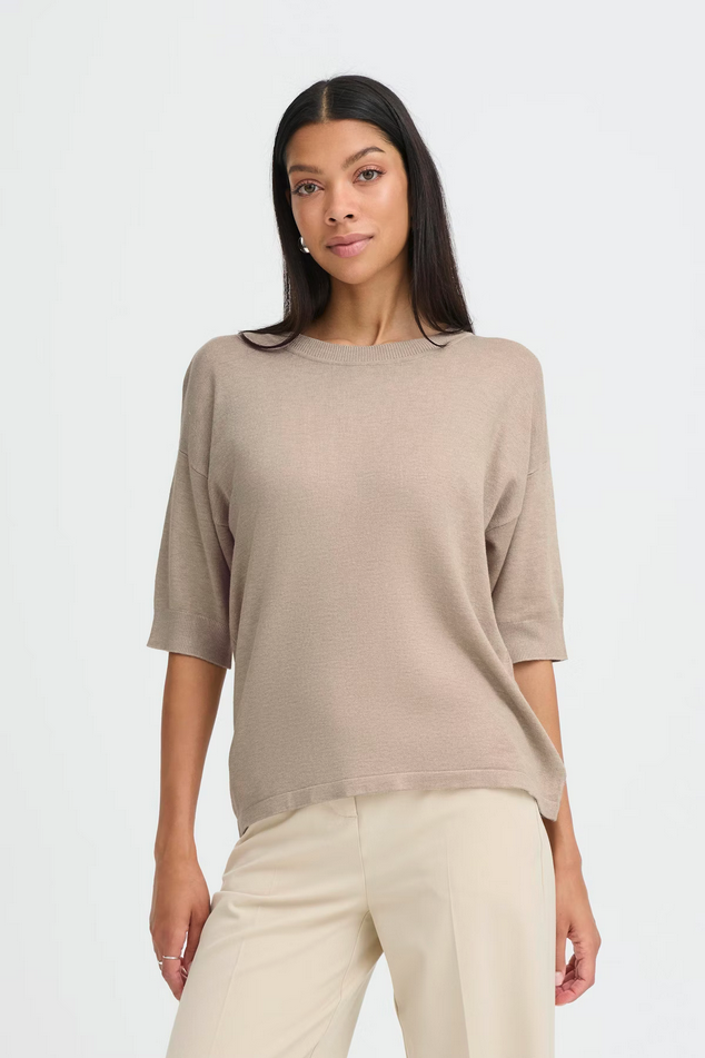 Πλεκτή μπλούζα χαλαρής εφαρμογής από την B.YOUNG - το τέλειο κομμάτι για καθημερινή χρήση! Κλασική στρογγυλή λαιμόκοψη, χαμηλοί ώμοι και μανίκια στον αγκώνα για άνεση και στυλ. Η πρακτική επιλογή για κάθε casual ή smart-casual περίσταση!