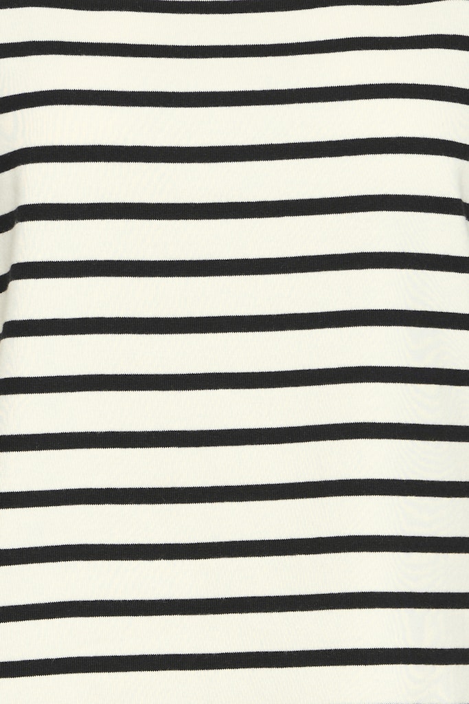 Ριγέ μπλούζα με μακριά μανίκια και boat neckline που προσθέτει μια κομψή νότα. Οι οριζόντιες ρίγες τρέχουν ομοιόμορφα σε όλο το σώμα και τα μανίκια, ενώ το μήκος φτάνει ακριβώς κάτω από τη μέση για άνετη εφαρμογή. Ιδανικό για καθημερινές εμφανίσεις.