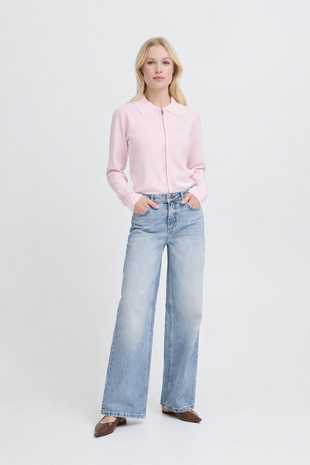 Ζακέτα με μακριά μανίκια και κανονική εφαρμογή που ξεχωρίζει για τη minimalist αισθητική της. Γιακάς polo, μήκος που φτάνει στο ύψος του γοφού. Ιδανικό για καθημερινές εμφανίσεις.