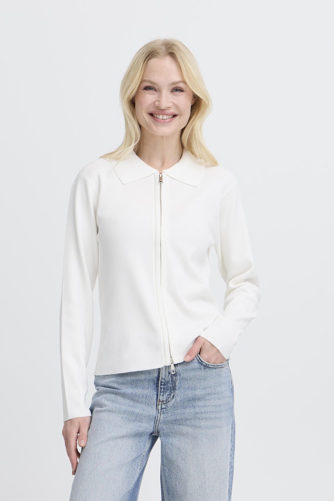 Ζακέτα με μακριά μανίκια και κανονική εφαρμογή που ξεχωρίζει για τη minimalist αισθητική της. Γιακάς polo, μήκος που φτάνει στο ύψος του γοφού. Ιδανικό για καθημερινές εμφανίσεις.
