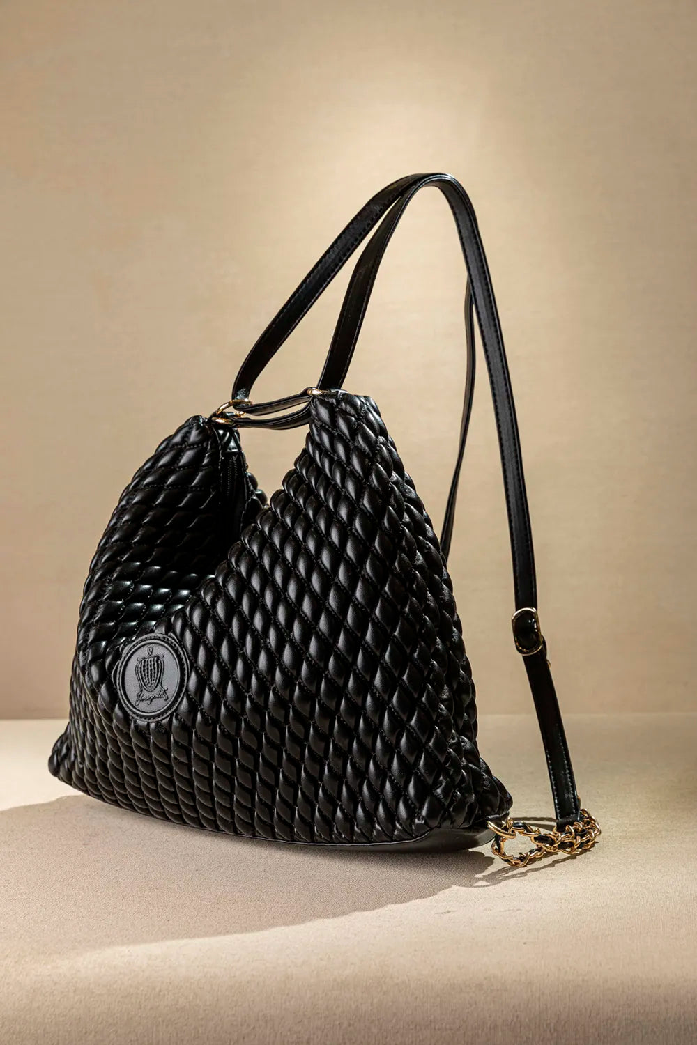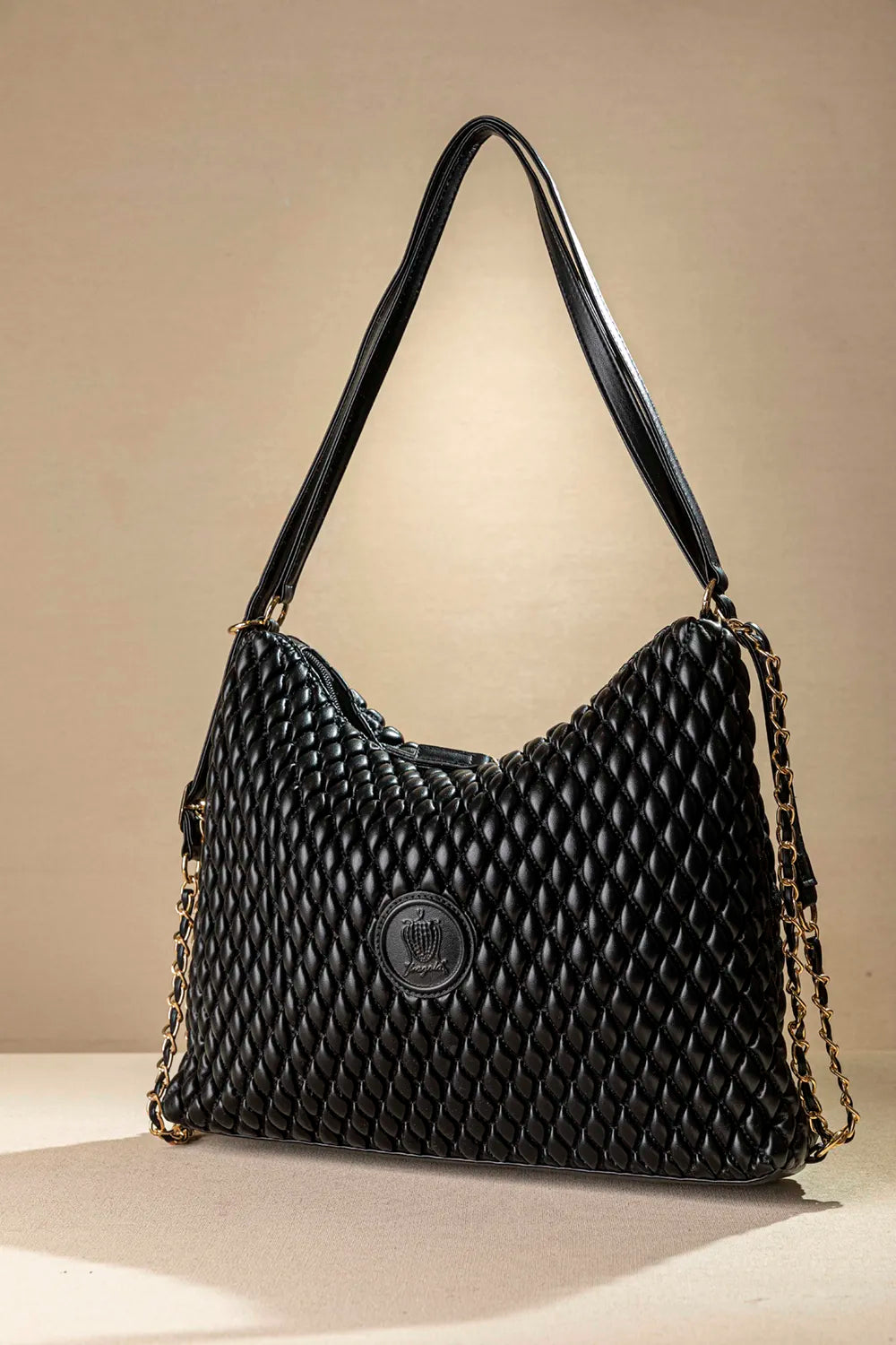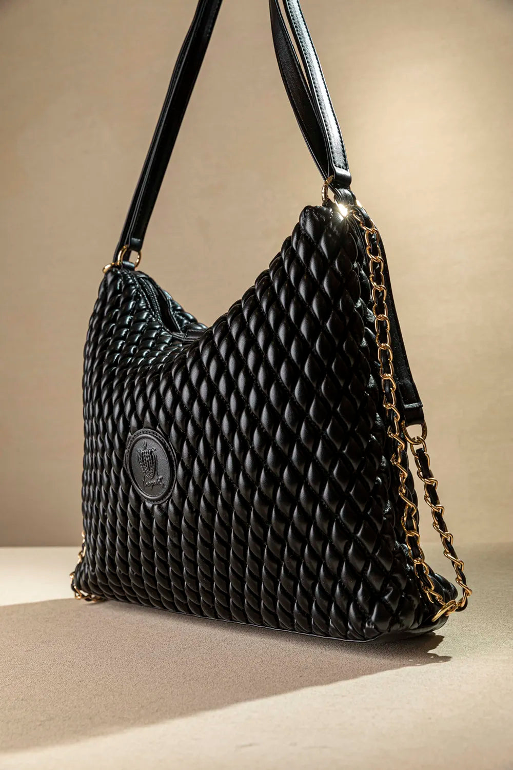 Chic πολυμορφική τσάντα από μαλακό συνθετικό δέρμα με ανάγλυφη καπιτονέ υφή που θυμίζει φολίδες. Μεγάλη χωρητικότητα, κλασικά τσεπάκια στη φόδρα και χεράκια με δερματίνη και αλυσίδα για chic εμφάνιση. Μετατρέπεται από backpack σε τσάντα ώμου!