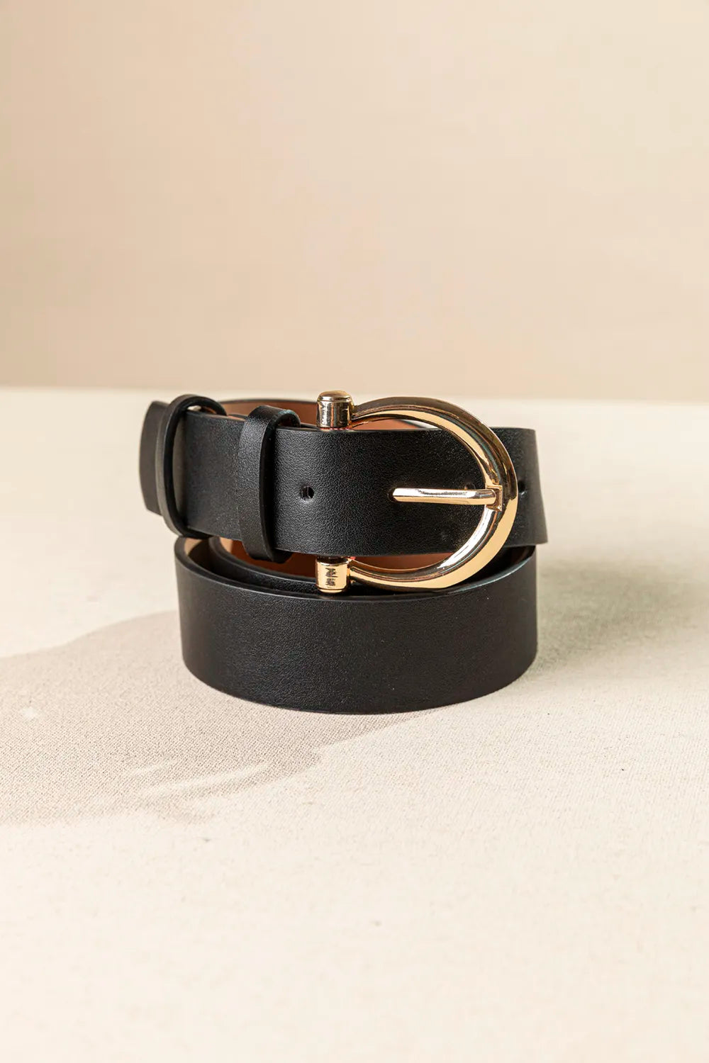 Ζώνη με στρογγυλή χρυσή πόρπη από την FRAGOLA - το chic αξεσουάρ που προσθέτει refined elegance! Συνθετικό δέρμα σε μαύρο χρώμα, κλασική γραμμή και statement στρογγυλή χρυσή πόρπη με minimal σχεδιασμό. Το versatile κομμάτι που ταιριάζει σε κάθε εμφάνιση!