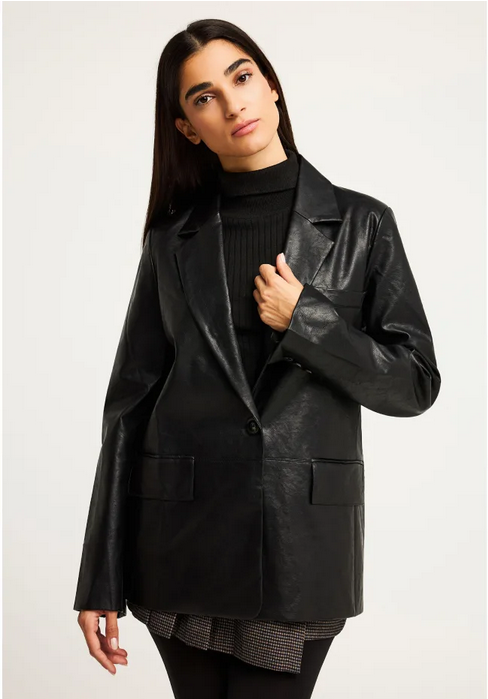 Σακάκι από οικολογικό δέρμα από την FUNKY BUDDHA - το must-have κομμάτι για κάθε γκαρνταρόμπα! Κατασκευασμένο από υψηλής ποιότητας οικολογικό δέρμα (PU), με μακριά μανίκια, μονόχρωμη εμφάνιση και πρακτικές μπροστινές τσέπες. Το τέλειο balance ανάμεσα σε στυλ και άνεση για φθινόπωρο και χειμώνα!