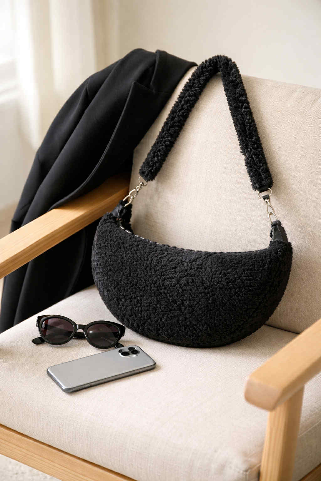 Faux fur τσάντα ώμου από την FUNKY BUDDHA - το cozy και trendy αξεσουάρ που κλέβει τις εντυπώσεις! Απαλή χνουδωτή υφή από οικολογική γούνα σε μαύρο χρώμα, ημισεληνοειδές σχήμα, ευρύχωρος εσωτερικός χώρος και ρυθμιζόμενος ιμάντας ώμου. Το must-have κομμάτι για χειμωνιάτικα looks με στυλ!
