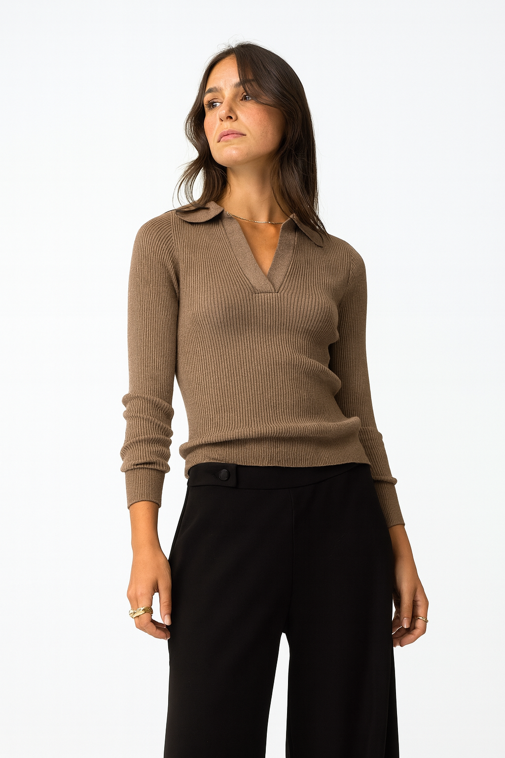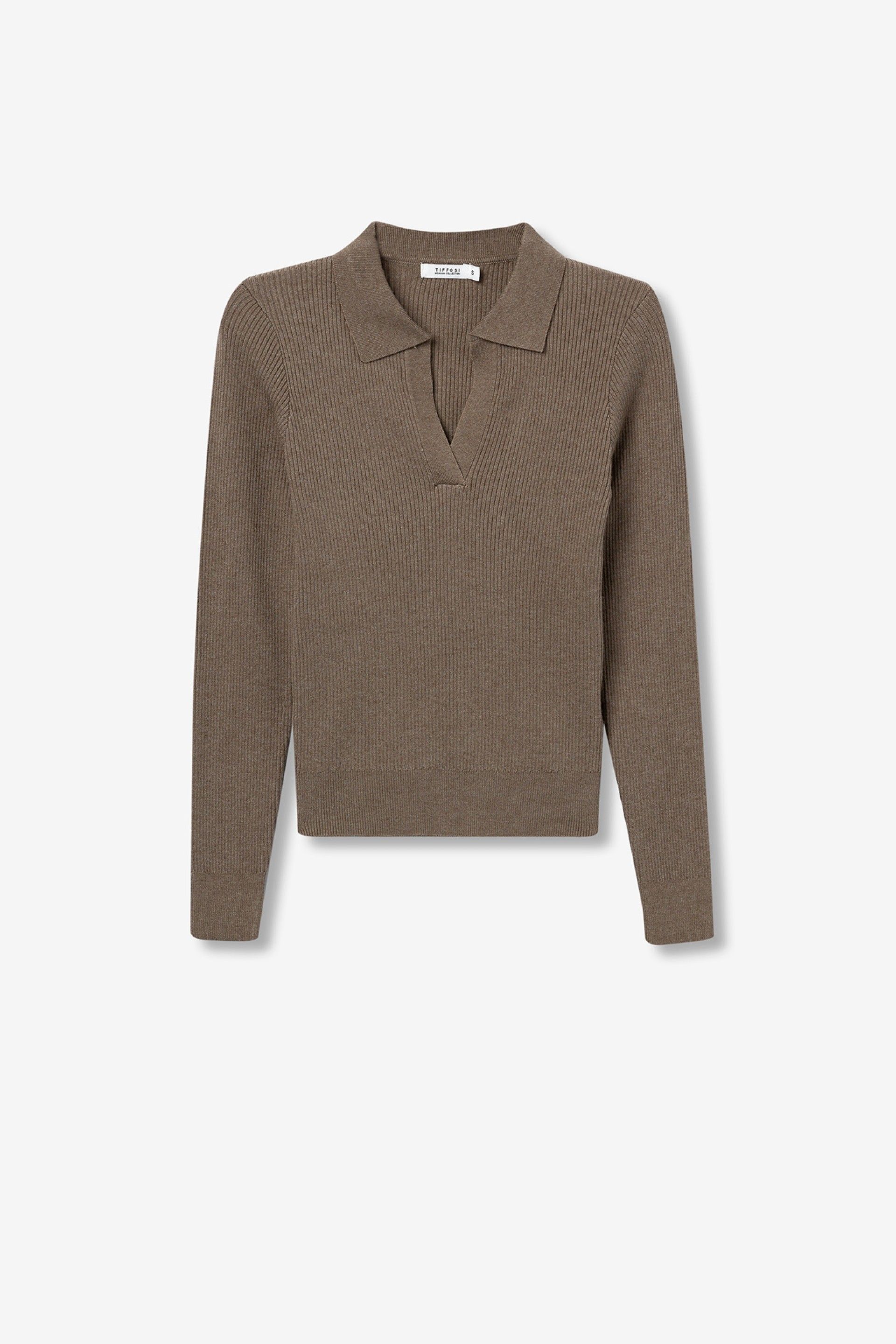 Πλεκτό πουλόβερ από την Tiffosi με κομψή V λαιμόκοψη και polo γιακά - το κλασικό κομμάτι που συνδυάζει κομψότητα με άνεση! Μακριά μανίκια και πλεκτή υφή για τέλεια εφαρμογή.