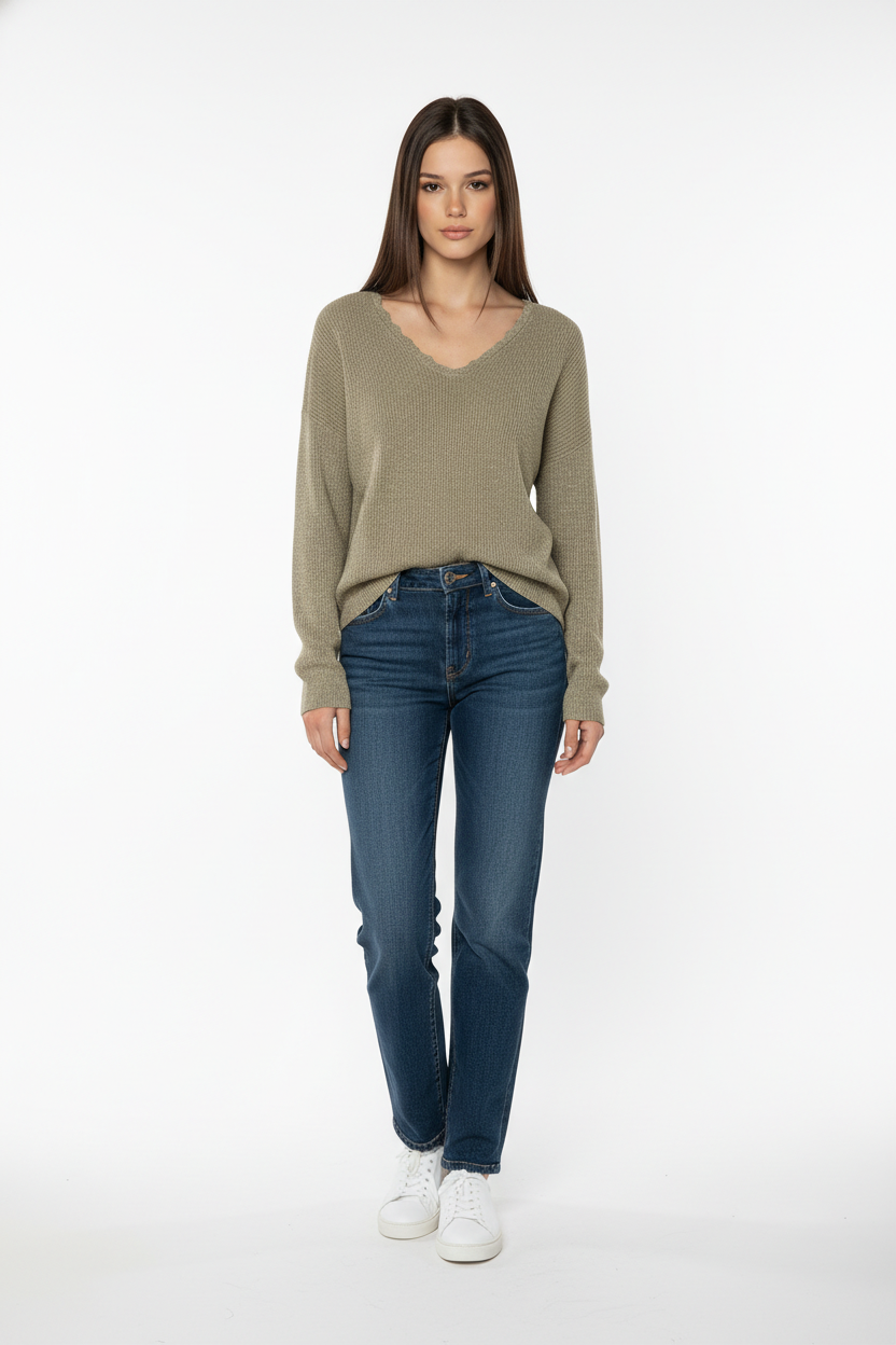 Άνετη πλεκτή μπλούζα με V-neck και μεταλλικές λεπτομέρειες - το τέλειο top layer για ζεστασιά και στυλ