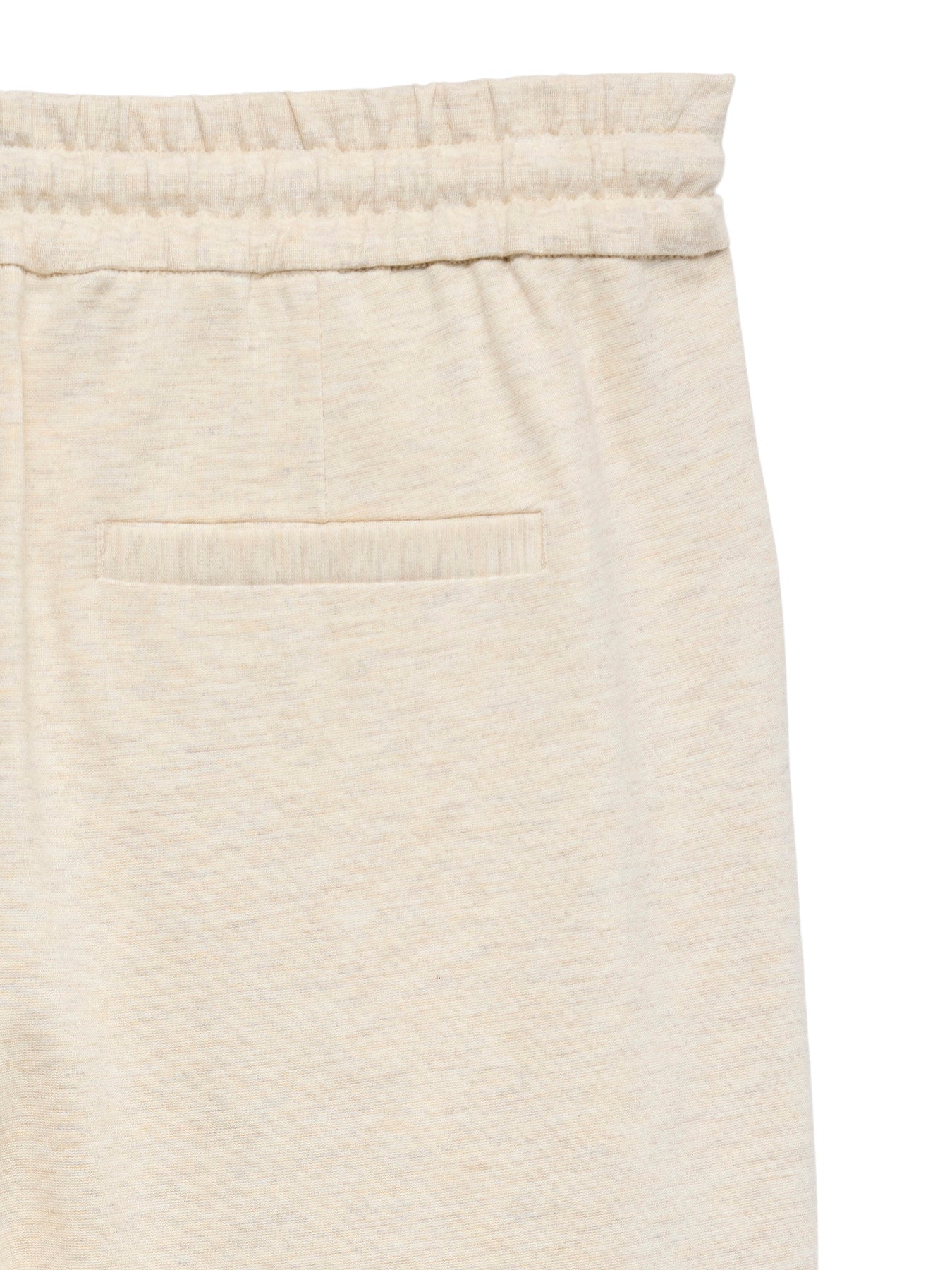 Κομψό παντελόνι με tapered γραμμή, λάστιχο στη μέση με κορδονάκι και πλαινές τσέπες σε εκρού απόχρωση — η διαχρονική επιλογή που πατάει από το office look μέχρι την βόλτα.