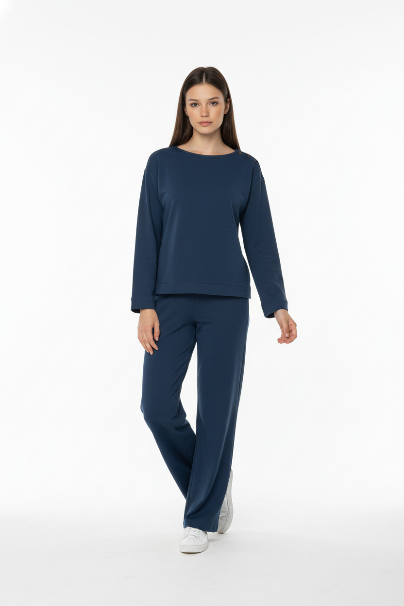Μπλούζα Boat Neck Μακρυμάνικη Μπλε
